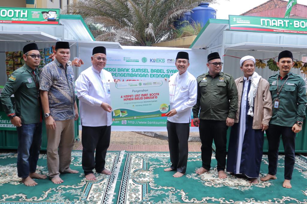 Mendorong kemajuan ekonomi syariah bagi ummat, PJ Walikota Ratu Dewa hadir langsung dalam acara penyerahan empat unit Mart-Booth dari Bank Sumsel Babel kepada pengurus Masjid Darussa’id, Jumat (20/10/2023).