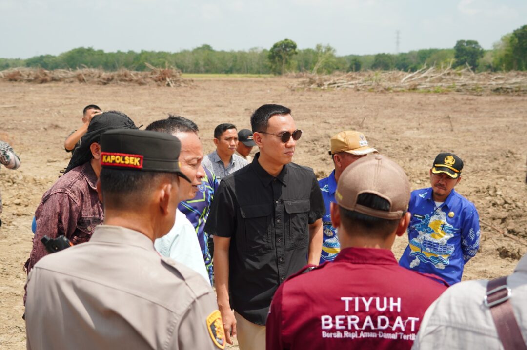 Bupati Ogan Komering Ilir (OKI), Muchendi Mahzareki, saat meninjau langsung lahan cetak sawah dan jalan desa di Lempuing.