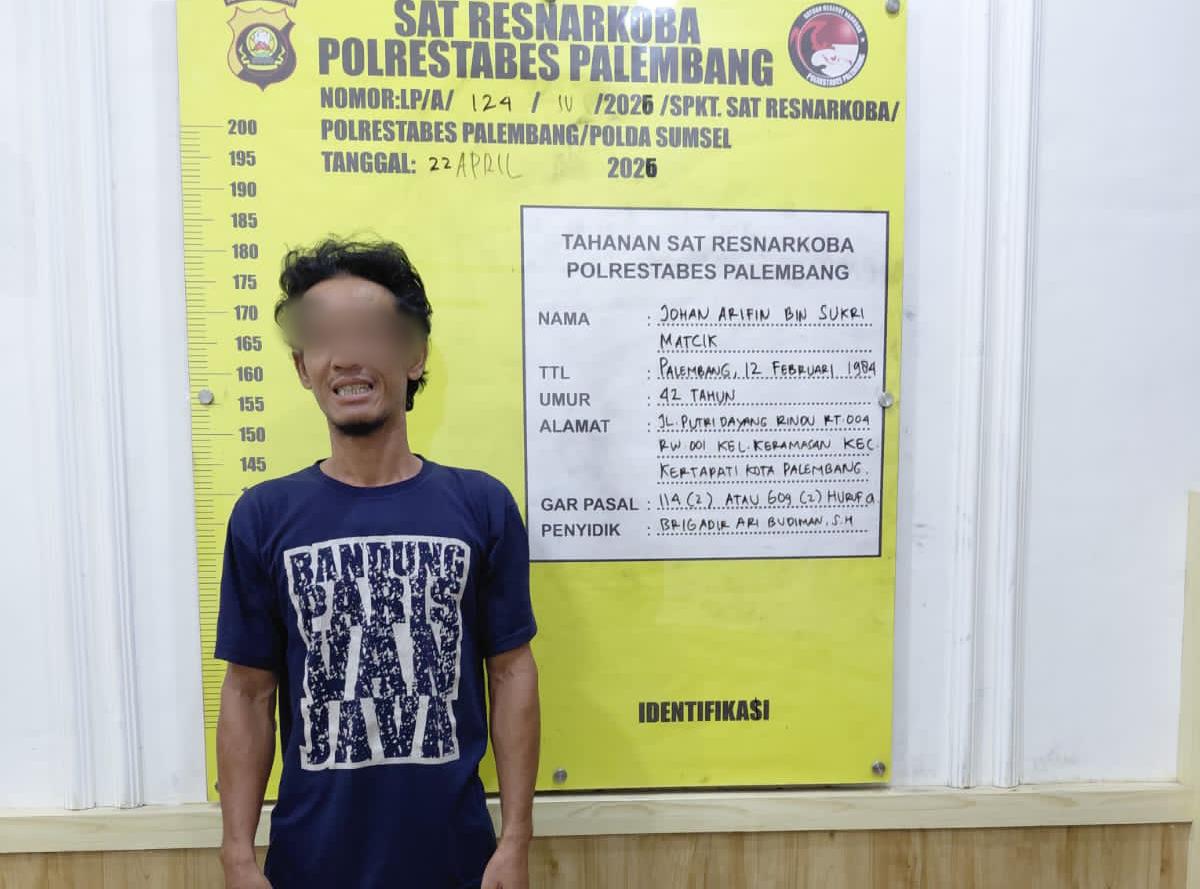 Palembang,SuaraMetropolitan – Kepolisian Daerah Sumatera Selatan melalui Unit 2 Satuan Reserse Narkoba Polrestabes Palembang kembali menegaskan komitmennya dalam memerangi peredaran gelap narkotika. Seorang pria yang diduga sebagai pengedar sabu berhasil ditangkap dalam penggerebekan di Jalan Putri Dayang Rindu, Kelurahan Keramasan, Kecamatan Kertapati, Kota Palembang, pada Senin malam, 20 April 2026, sekitar pukul 19.30 WIB.