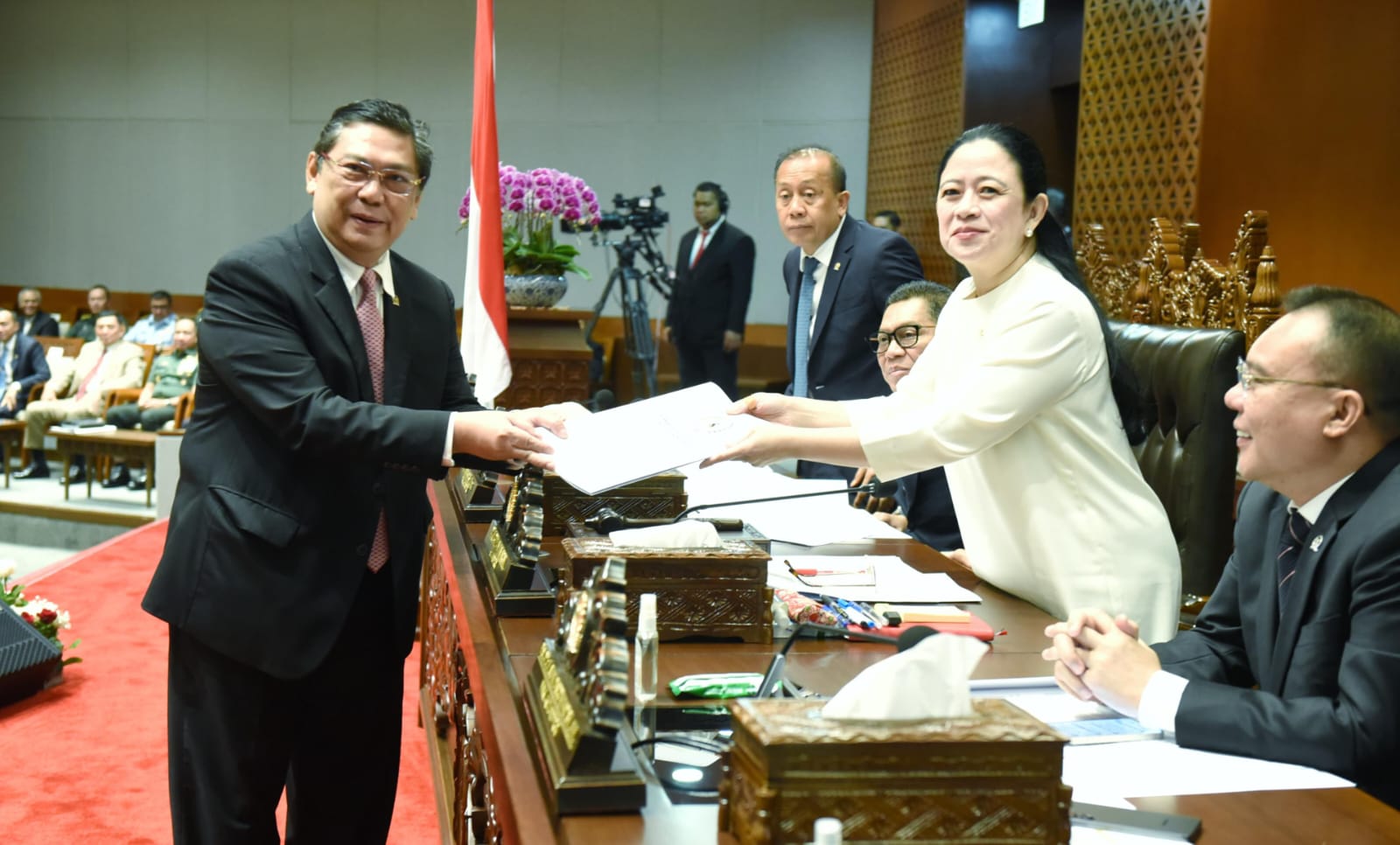 Menanggapi laporan Ketua Komisi I, Ketua DPR RI Puan Maharani meminta persetujuan seluruh fraksi di DPR RI untuk disahkan menjadi Undang-Undang. “Kini saatnya kami meminta persetujuan fraksi-fraksi DPR RI, apakah RUU TNI dapat disetujui untuk menjadi Undang-Undang?” tanya Puan yang kemudian disambut dengan persetujuan seluruh Anggota DPR.
