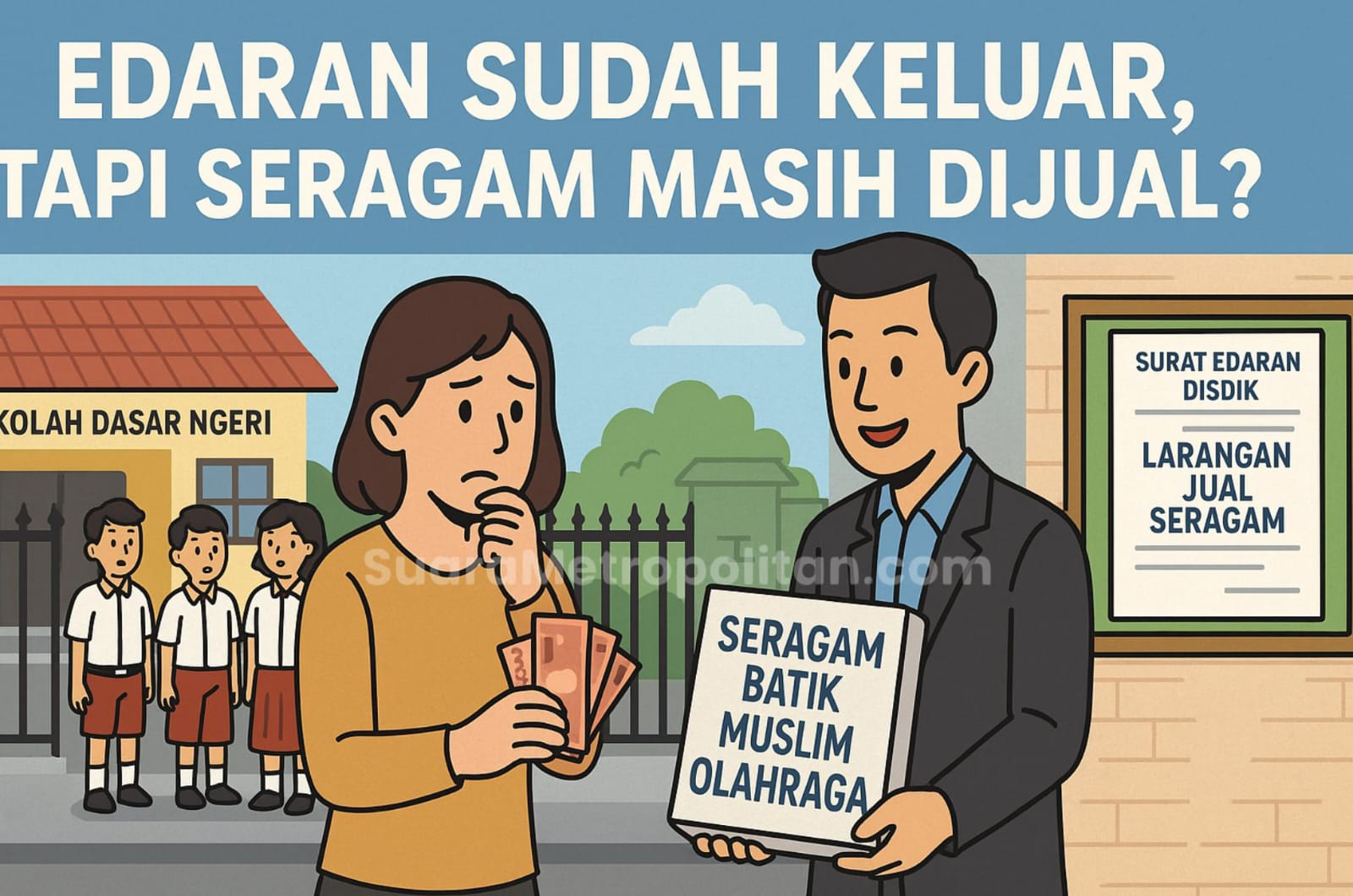 “Awalnya kami pikir seragam hanya pilihan, tapi ternyata kami diwajibkan membeli paket lengkap dari sekolah. Kalau tidak ikut beli, anak kami dianggap tidak ‘kompak’ dengan yang lain,” ujar salah satu wali murid kepada SuaraMetropolitan.
