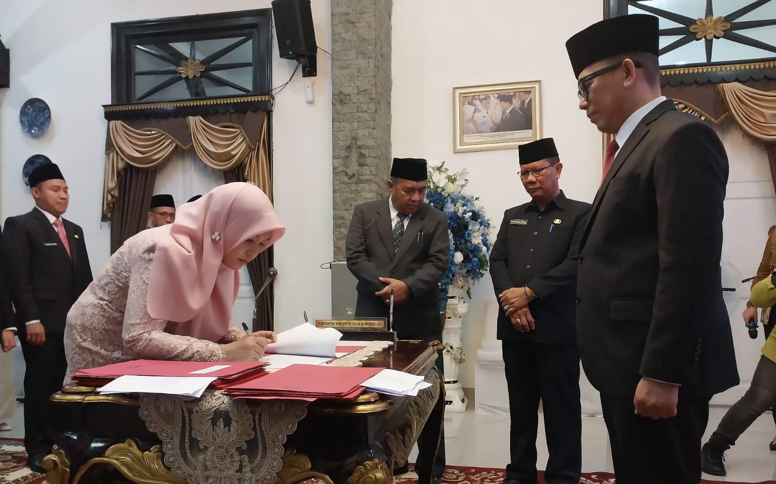 Prosesi pelantikan dan mengambil sumpah jabatan 9 Kepala Dinas serta 6 Kepala Sekolah di lingkungan Pemerintah Kabupaten OKU, Jumat (23/1/2026) petang.