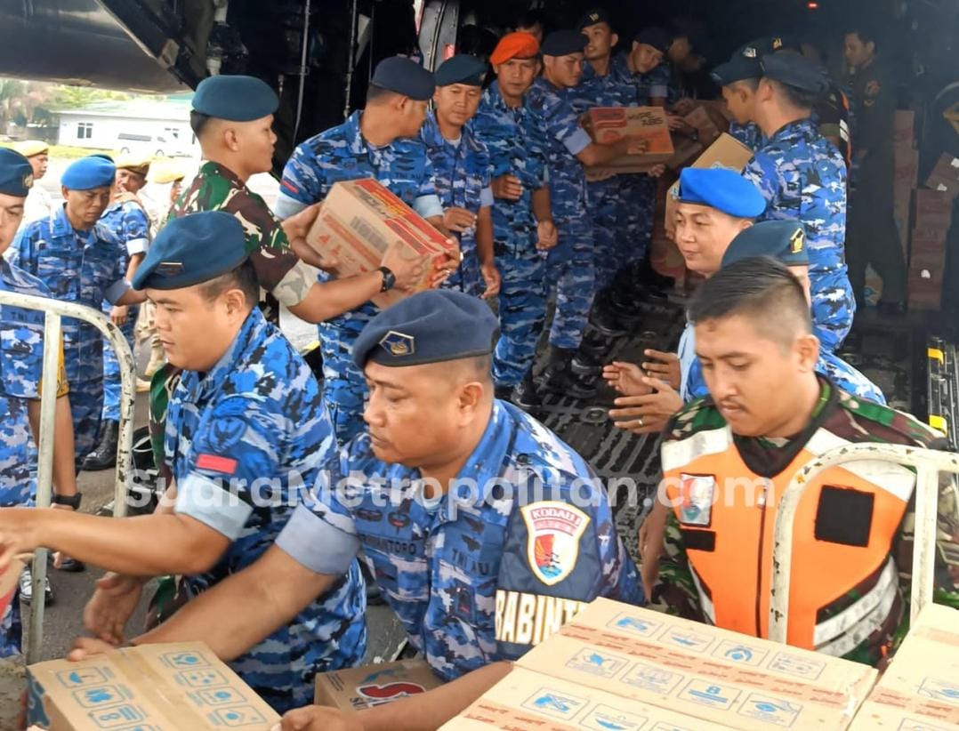 Palembang,SuaraMetropolitan – Upaya membantu percepatan penanganan pascabencana banjir bandang di wilayah Sumatera kembali dilakukan melalui pengiriman bantuan kemanusiaan dari Lanud Sri Mulyono Herlambang (SMH). Sebanyak 14 ton logistik diberangkatkan menuju Provinsi Aceh, Sumatera Utara, dan Sumatera Barat pada Jumat (5/12/2025), menggunakan pesawat TNI Angkatan Udara Hercules C-130 A-1333 dari Skadron Udara 33 Lanud Sultan Hasanuddin Makassar.