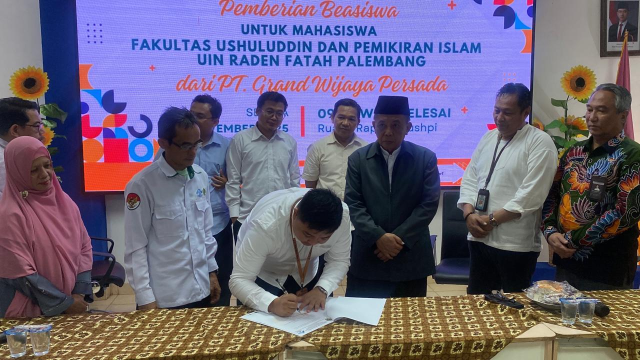 Palembang,SuaraMetropolitan – Bentuk kepedulian terhadap dunia pendidikan kembali ditunjukkan oleh pihak swasta. PT Grand Wijaya Persada (GWP) menyalurkan bantuan beasiswa pendidikan bagi lima mahasiswa berprestasi dari Fakultas Ushuluddin dan Pemikiran Islam Universitas Islam Negeri (UIN) Raden Fatah Palembang.