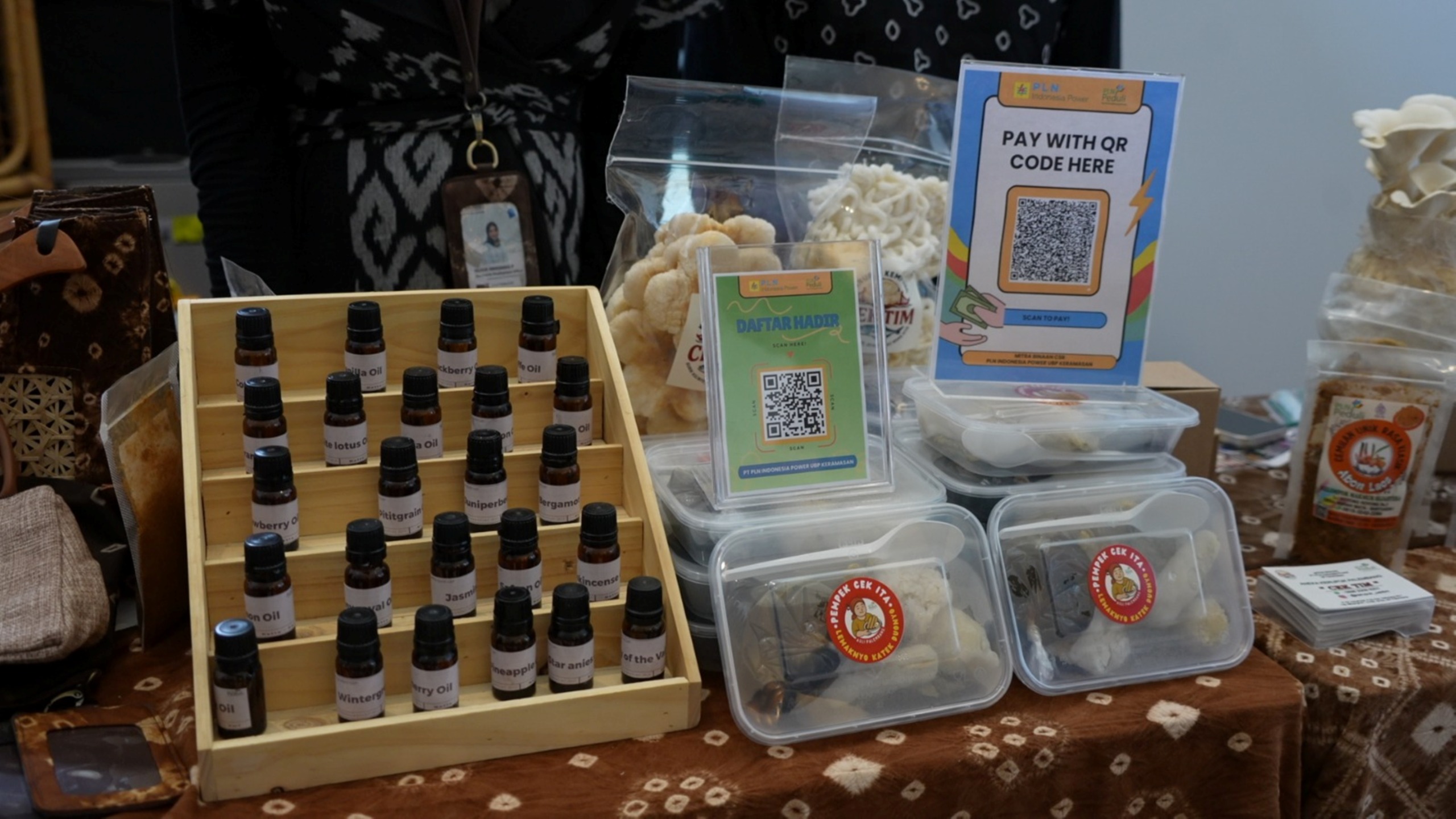 Melalui booth khusus yang mewakili unit pembangkitan di bawah PLN IP UBP Keramasan, pengunjung disuguhkan aneka produk khas dari para mitra binaan, diantaranya UP Keramasan dengan produk kain Jumputan Palembang dan Batik, hasil karya pelaku UMKM yang mengangkat motif lokal dengan sentuhan modern. Produk Essential Oil alami dari tanaman lokal sebagai produk kesehatan dan aromaterapi. Makanan khas seperti Pempek Cek Ita dan Kerupuk Kemplang Cek Tim yang memiliki rasa yang nikmat.