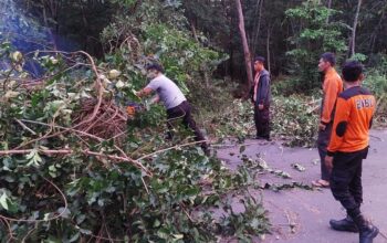 Bantul, Metroindonesia. co – Pohon beringin di perkirakan berumur hampir 100 tahun tumbang diterjang angin yang juga disertai hujan dengan intensitas cukup tinggi, pada Jumat (14/02/2020).