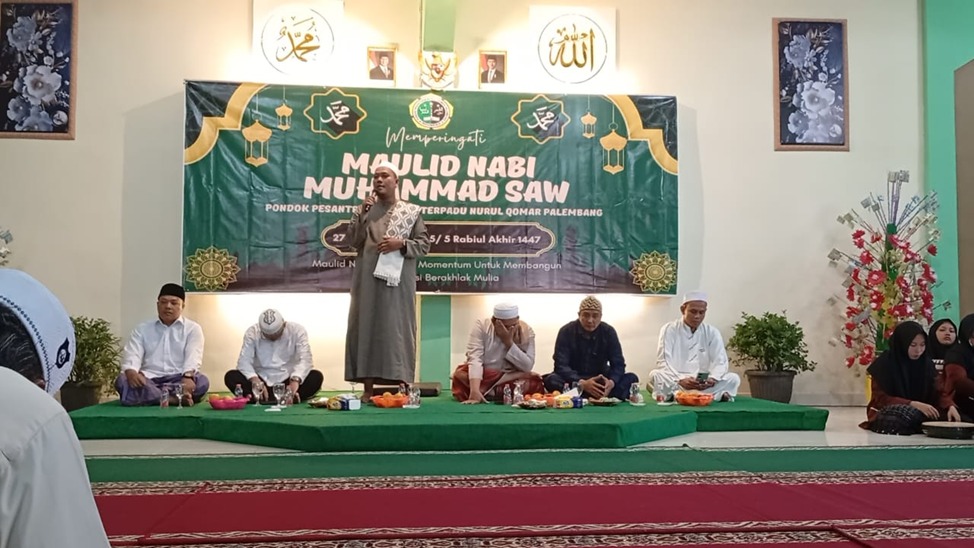 Palembang, SuaraMetropolitan, – Pondok Pesantren (Ponpes) Nurul Qomar Palembang menggelar peringatan Maulid Nabi Besar Muhammad SAW 1447 Hijriah, sekaligus meresmikan gedung baru musholla santriwati dan lokal kelas Raudhatul Athfal (RA) Nurul Qomar, Sabtu (27/9/2025). Acara yang berlangsung khidmat dan meriah ini diselenggarakan di aula ponpes yang terletak di Kelurahan Lawang Kidul. Sabtu 27 September 2025