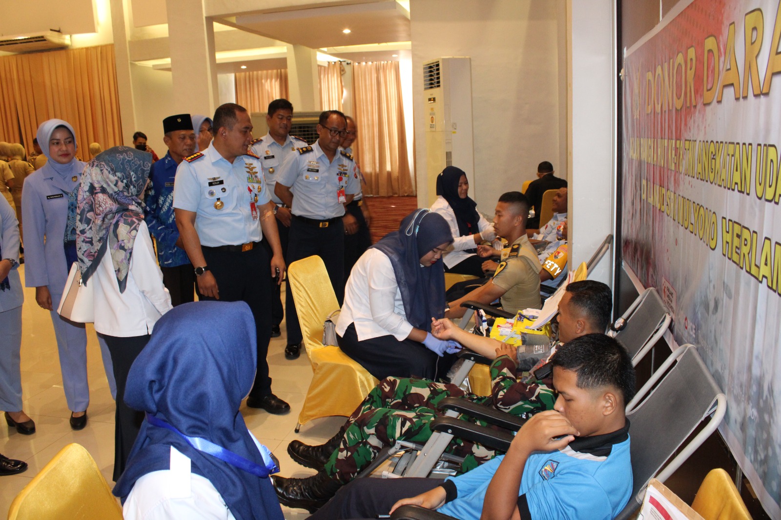Menggandeng PMI kota Palembang, Lanud Sri Mulyono Herlambang (SMH) Palembang gelar Bakti Sosial berupa donor darah rangkaian memperingati HUT Ke-78 TNI Angkatan Udara tahun 2024 bertempat di Gedung Bima Sakti Lanud Sri Mulyono Herlambang, Kamis, (07/3/2024).
