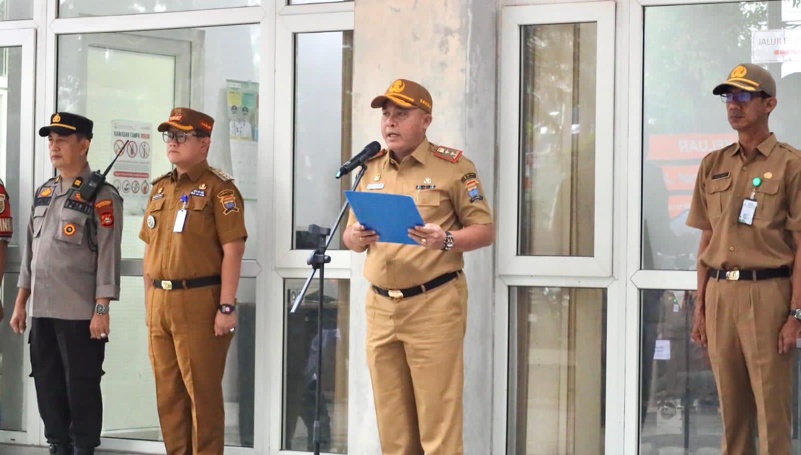 Sekda kota Palembang Aprizal Hasyim, saat memimpin apel di kecamatan Ilir Timur I, senin (19/5/2025).