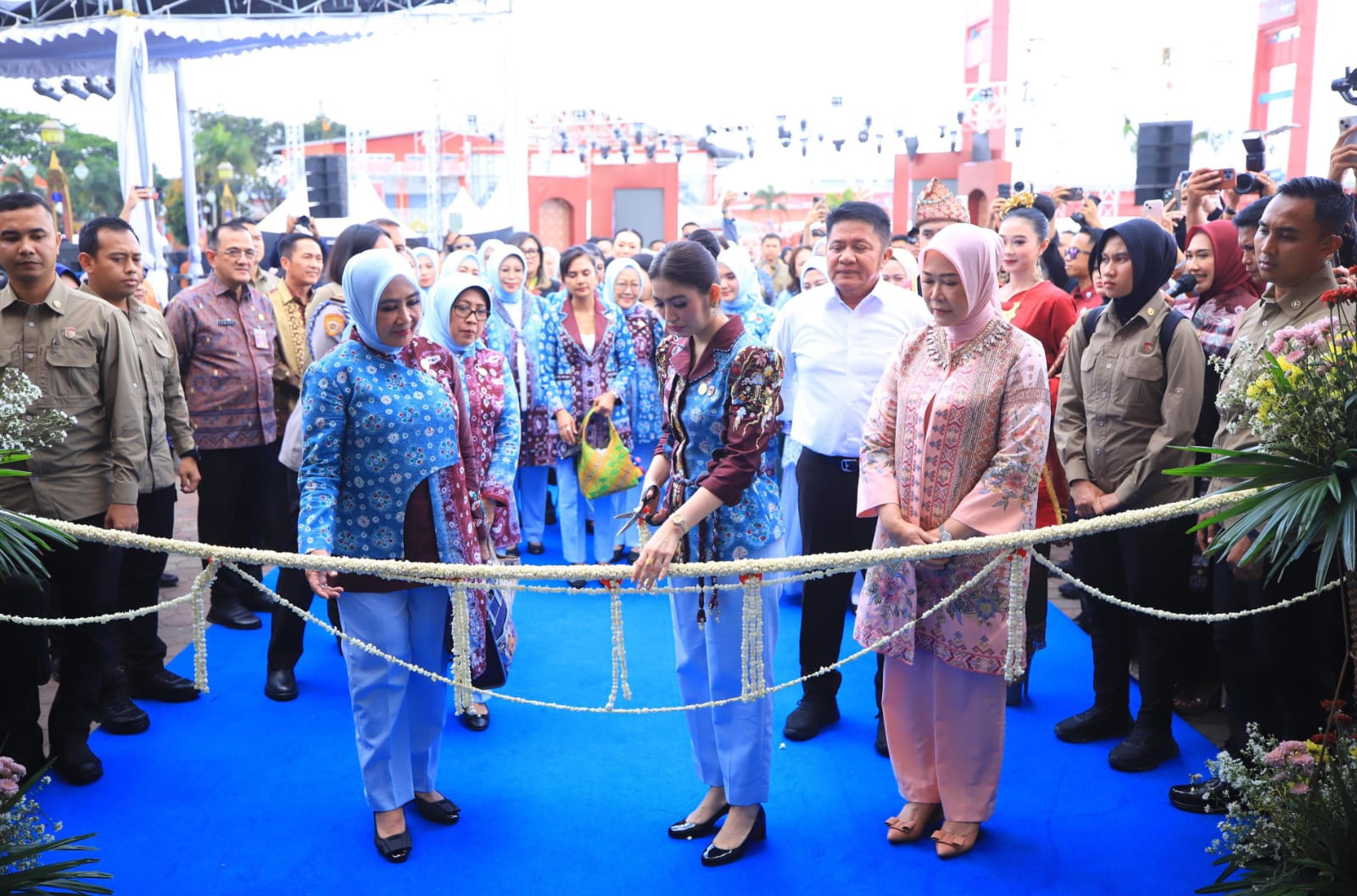 Peresmian pembukaan Sriwijaya Expo 2025, di tandai dengan pengguntingan pita oleh Ketua Umum Dewan Kerajinan Nasional (Dekranas), Selvi Ananda Gibran Rakabuming, Jum'at (1/8/2025).