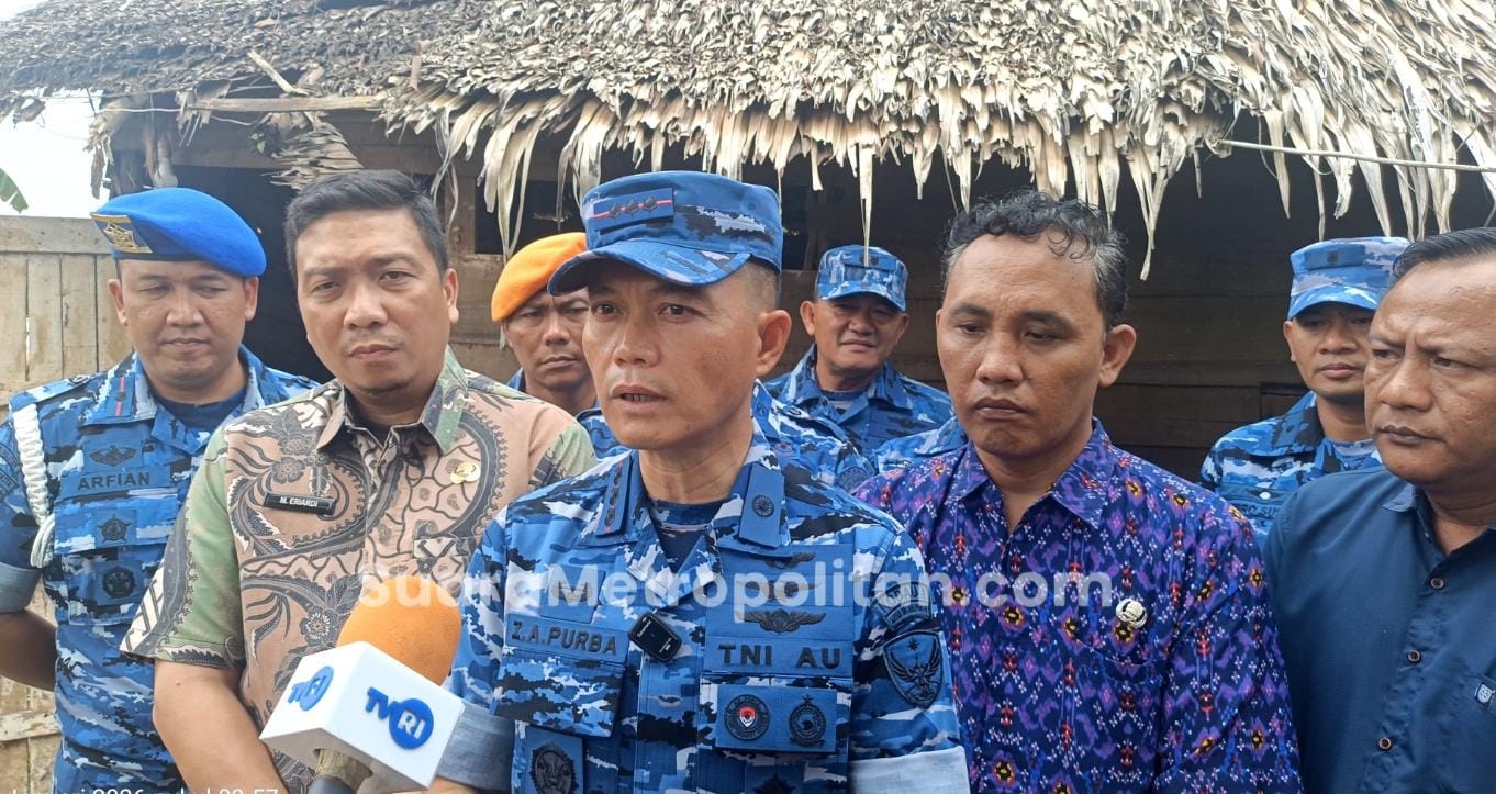 Komandan Lanud SMH, Kolonel Pnb Zulfikri Arif Purba, S.Sos., M.S. (NSSS), saat di wawancarai di sela-sela kegiatan pembagian sembako sekaligus peninjauan rencana bedah rumah milik Suhuda (49), warga yang telah lebih dari 10 tahun menempati rumah tidak layak huni, Jum'at (23/1/2026).