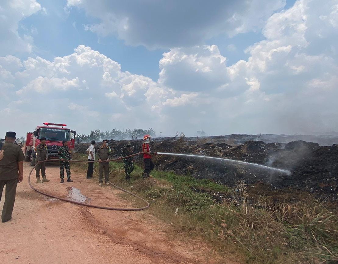Tempat Pembuangan Akhir (TPA) Keramasan Terbakar, Satpol-PP kota Palembang Bidang linmas turun langsung untuk memadamkan Api yang menjalar.